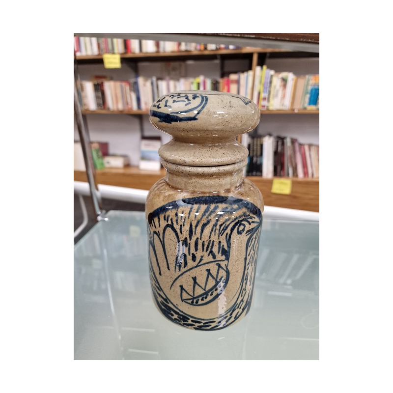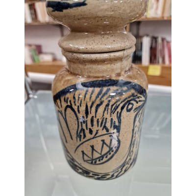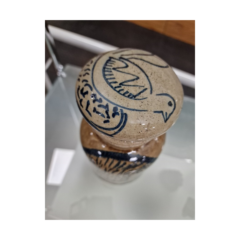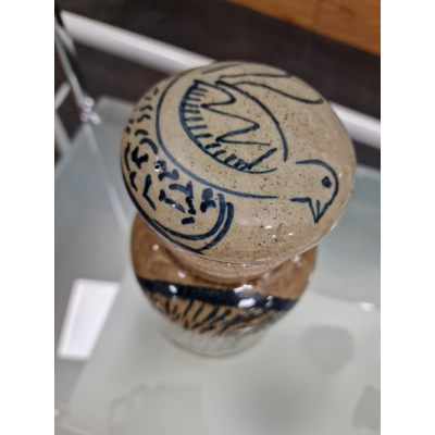 Tarro marrón con detalles azules