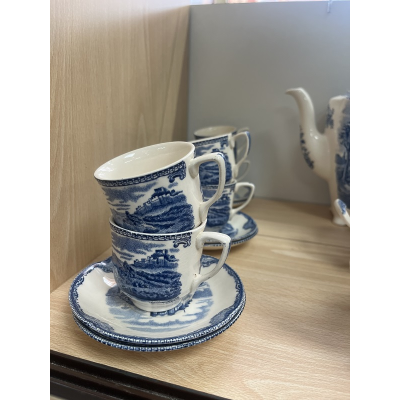 Contiene: sopera,dos bandejas,12 platos llanos,12 hondos,12 de postre