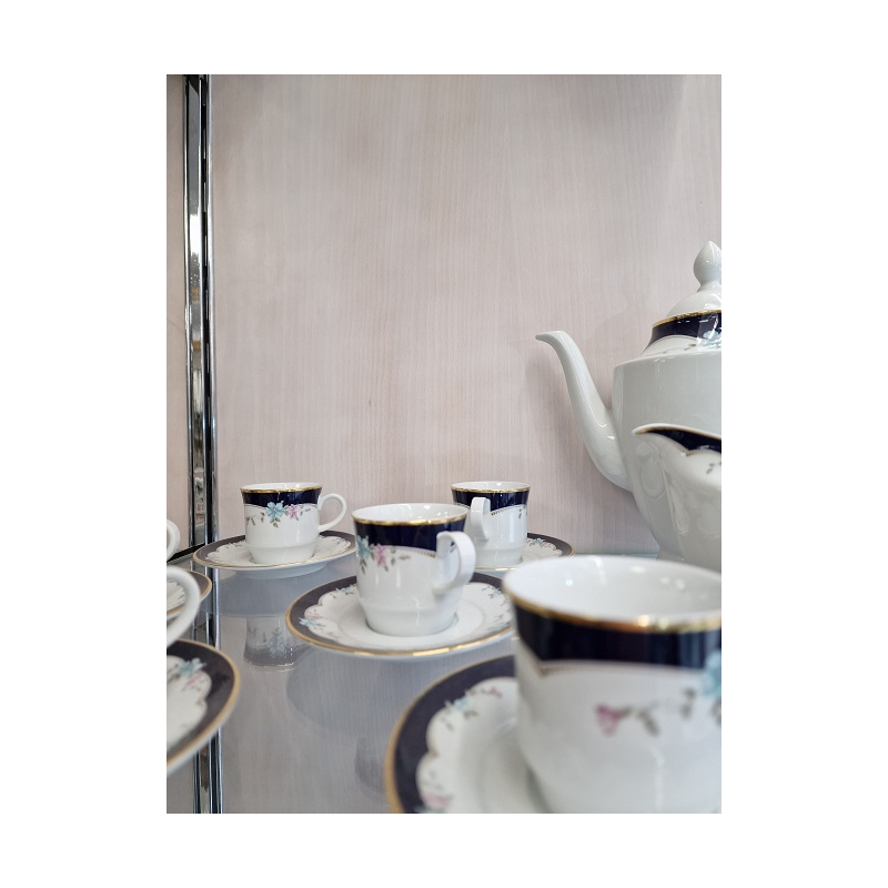 Contiene cafetrea,azucarera,jarra de leche 12 platos y 12 tazas