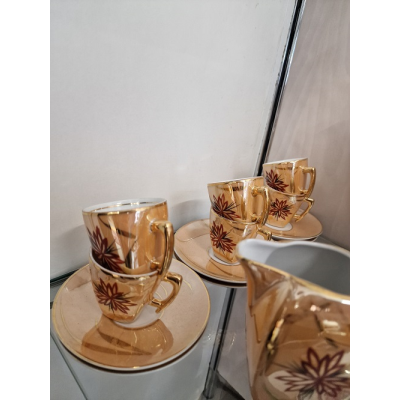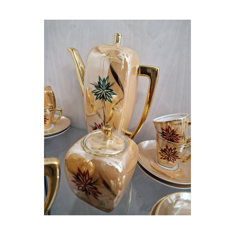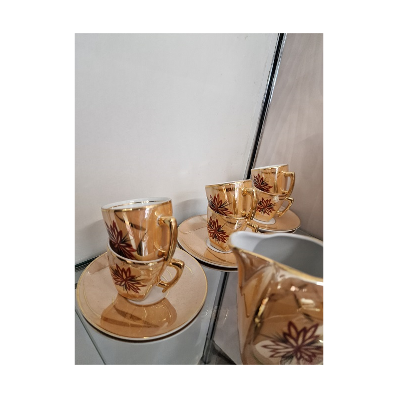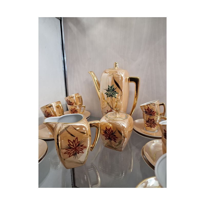 Contiene cafetera,azucarera,jarra de leche, 12 tazas y 12 platos