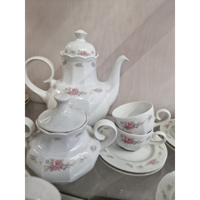 Contiene cafetera,azucarera,jarra de leche 6 platos y 6 tazas