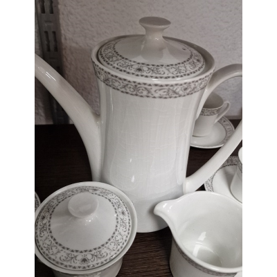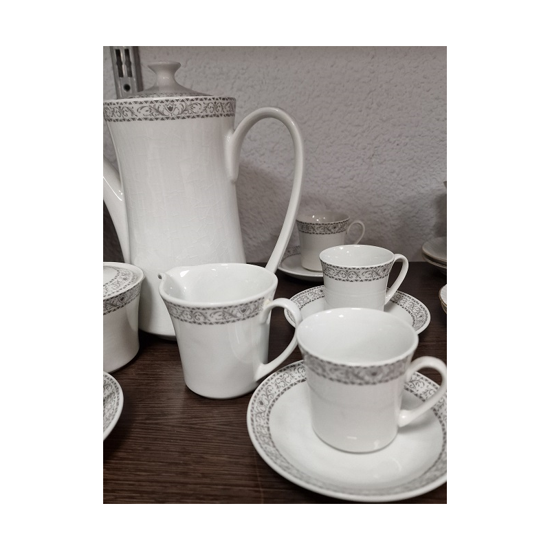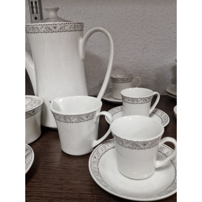 Contiene cafetera,jarra de leche,azucarera,6 platos y 6 tazas